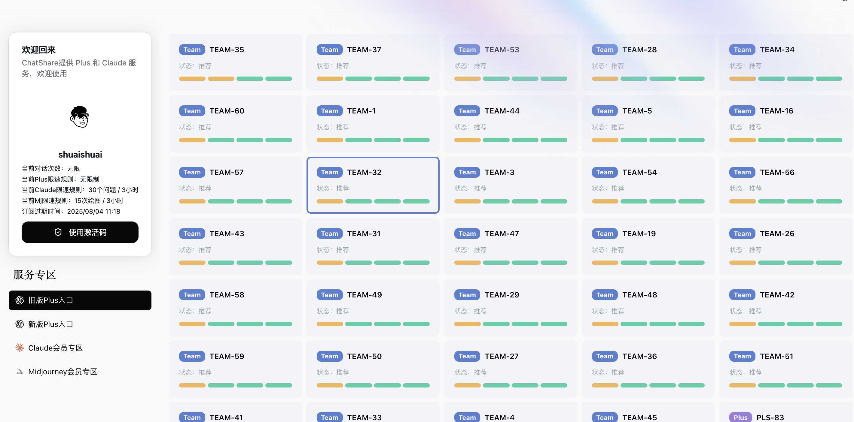 月卡/周卡/天卡激活码购买地址:月卡/周卡自助购买